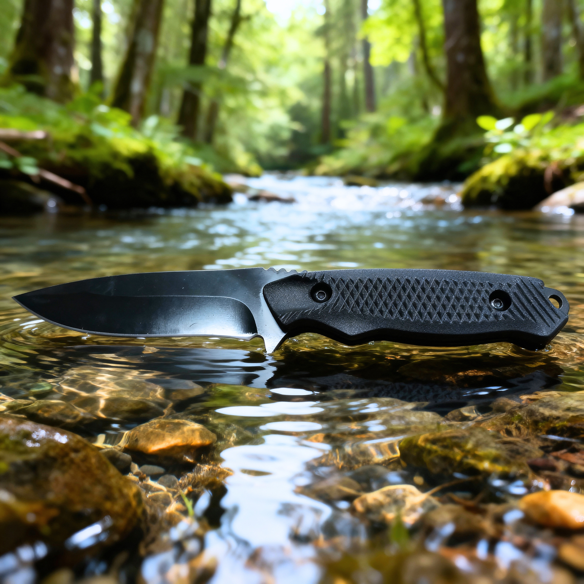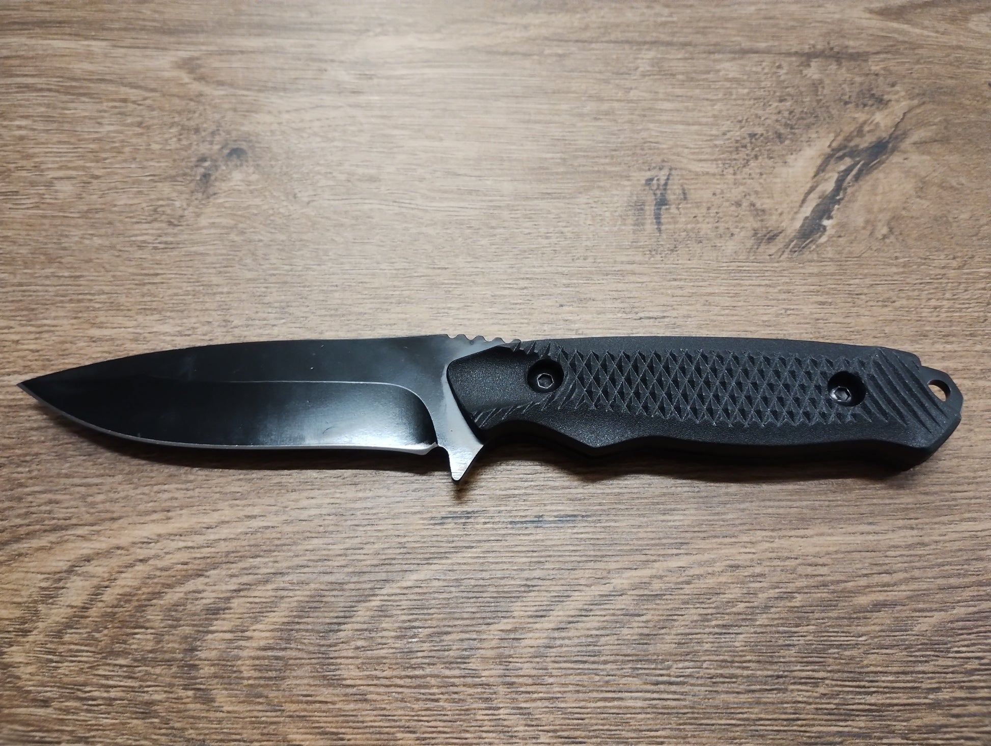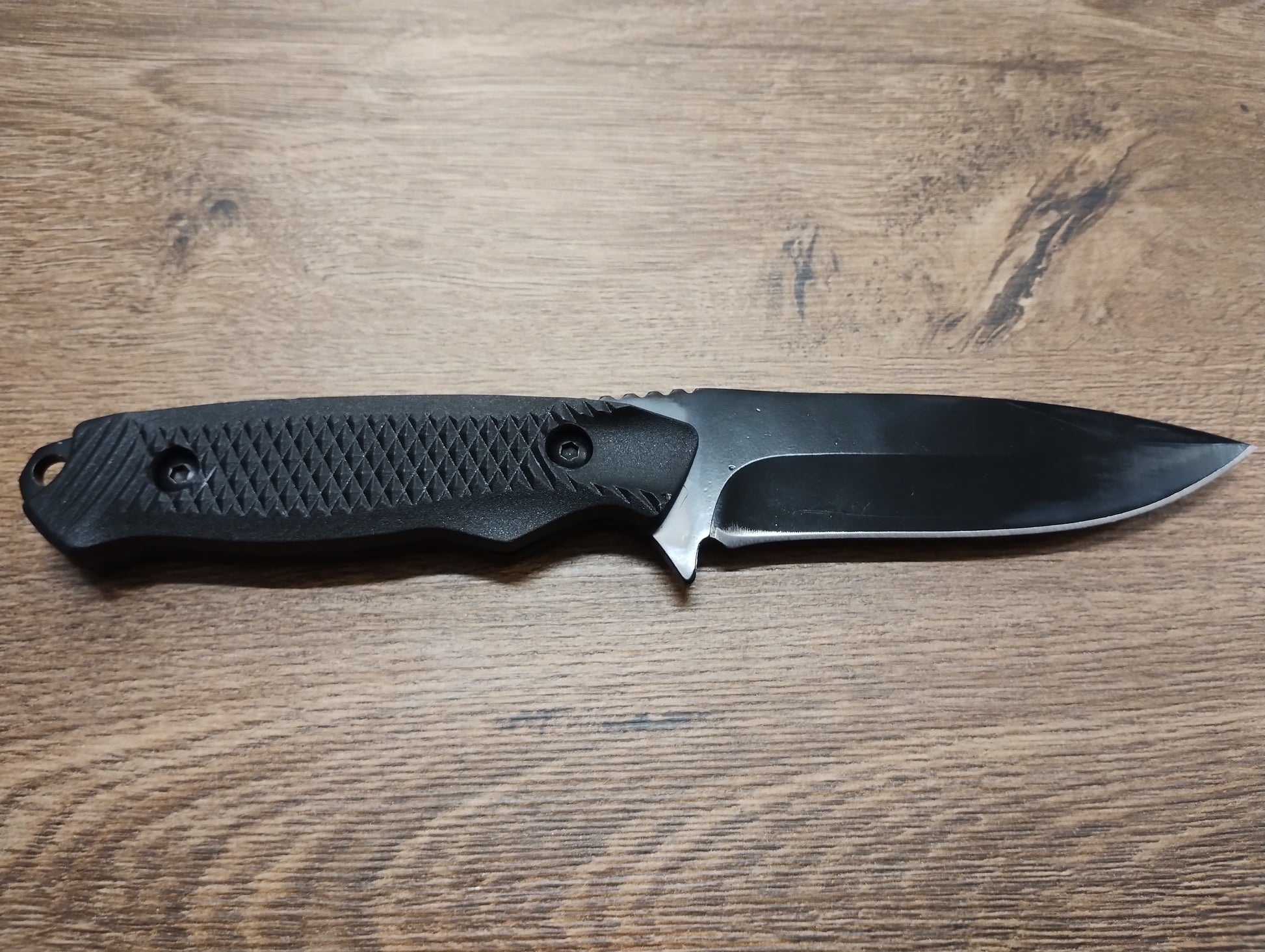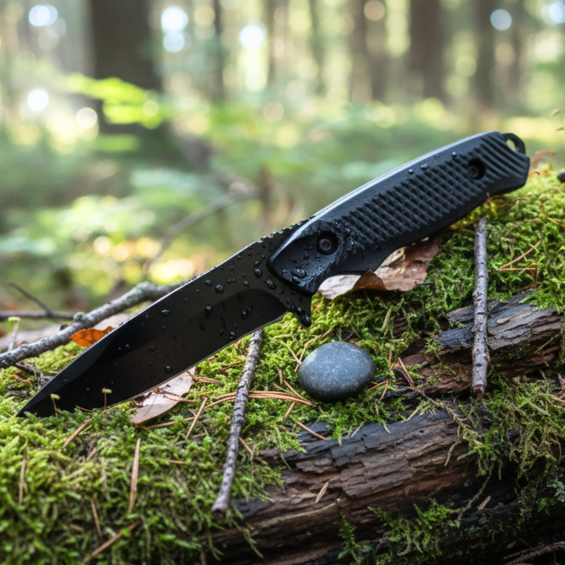 Ostrze o długości 9 cm zostało wykonane z wysokiej jakości stali nierdzewnej, odpornej na korozję i tępienie. Zapewnia pewne cięcie, dobrą kontrolę nad ostrzem oraz łatwość w utrzymaniu ostrości. Gładki profil i delikatny czarny połysk nadają mu nowoczesny, taktyczny wygląd.
