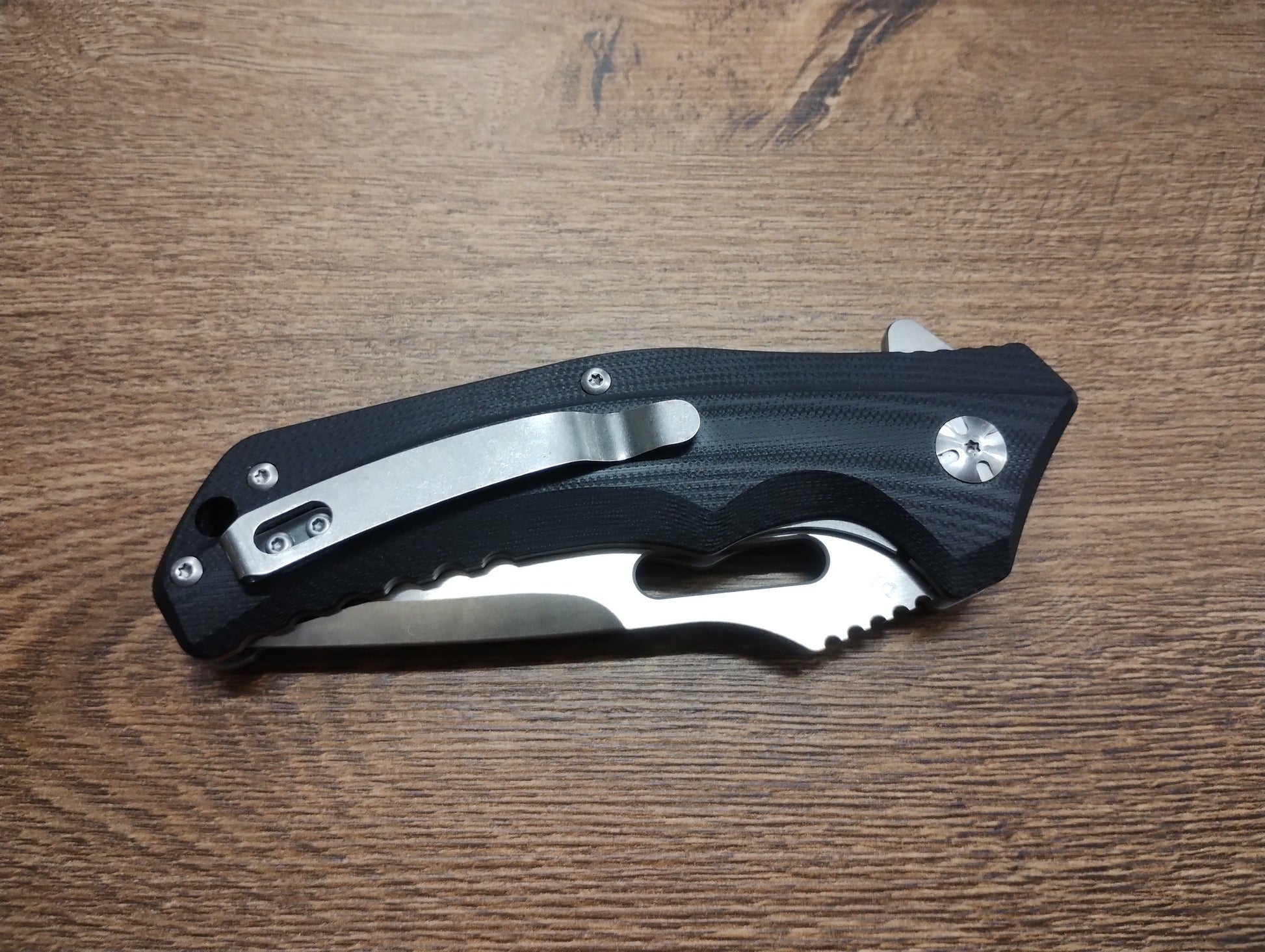 Rękojeść o długości 103 mm wykonano z G10 – materiału cenionego za swoją wytrzymałość i odporność na wilgoć. Całość wspiera system łożysk kulkowych, który pozwala na szybkie i płynne otwieranie noża, nawet jedną ręką.